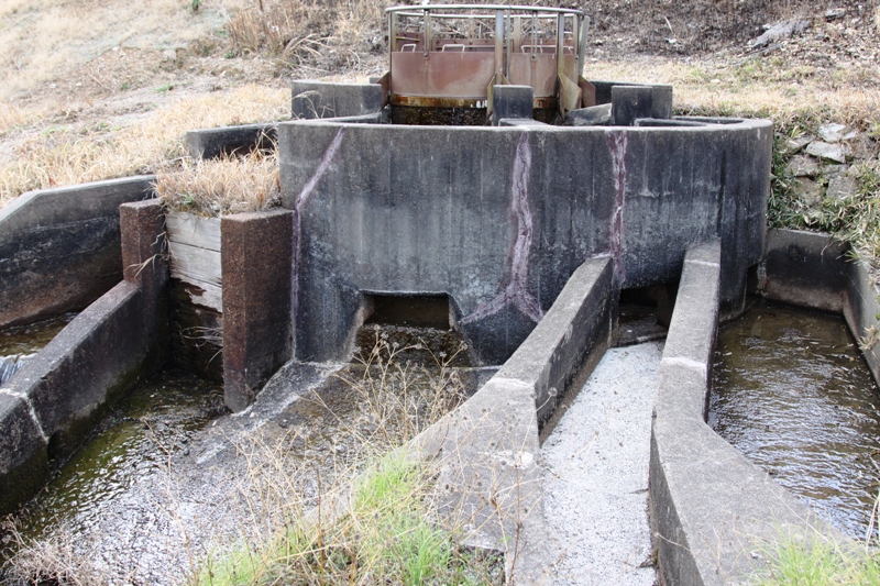 分水させた後に流れを安定させるためだろうか、それぞれ突き出した減勢スペースを持っている。そこがメカニカルな魅力。この円筒分水の主張しているところだ。